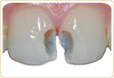 In certain cases of trauma, when a part of a tooth chips off from the whole, the patient is advised to keep the broken piece safe, preferably in saline or milk, so that the dentist can bond the original piece back onto the patient's tooth.